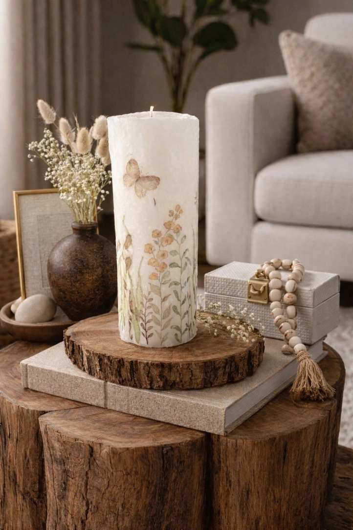 Vela Botânica Artesanal , sem cheiro uma excelente peça para compor a decoração