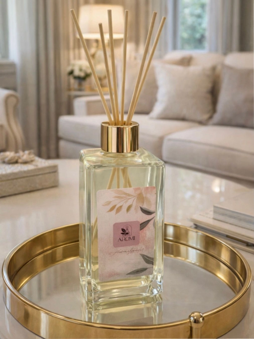 Aromatizador de ambiente com fragrância bamboo, fresca e sofisticada. Possui varetas de fibra natural que garantem difusão contínua do aroma. Frasco em vidro minimalista com tampa dourada, unindo elegância e modernidade. Essência de alta fixação e longa duração.